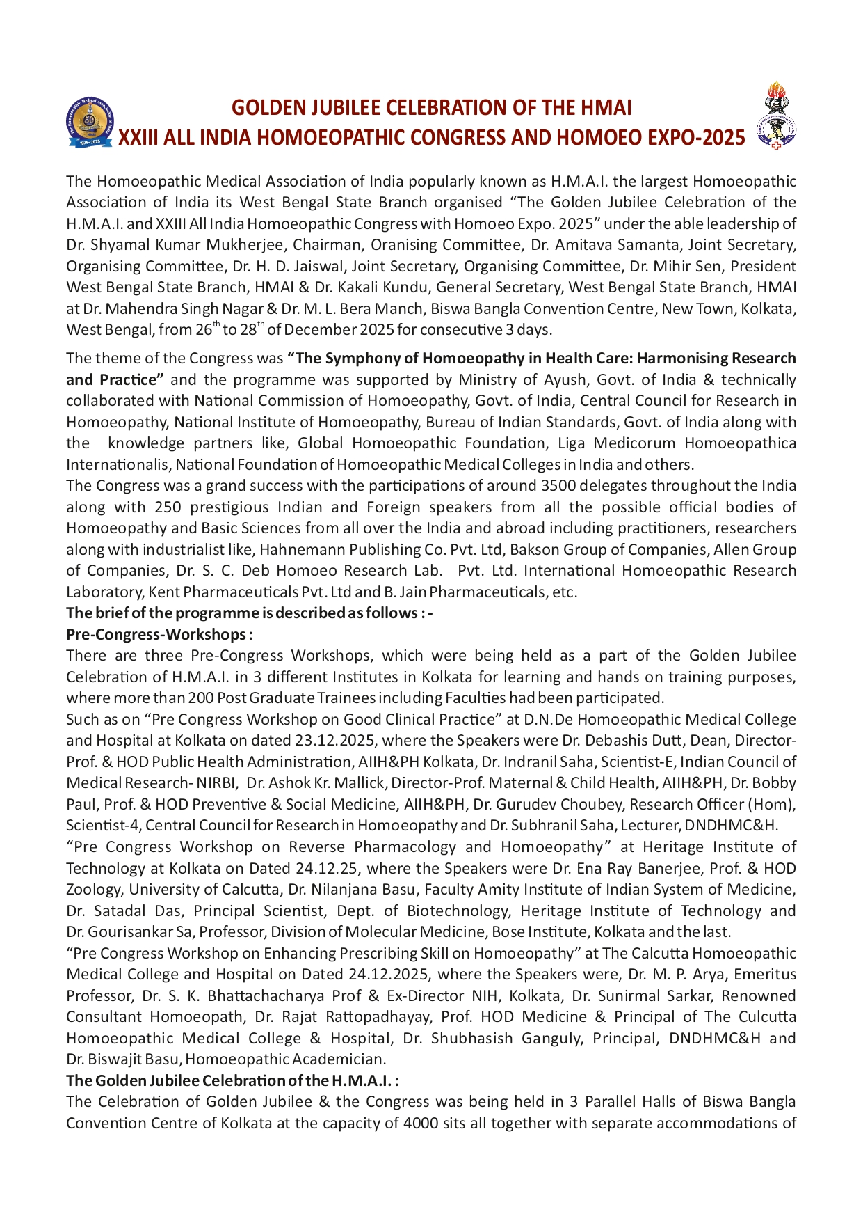 होम्योपैथिक मेडिकल एसोसिएशन ऑफ इंडिया की स्वर्ण जयंती